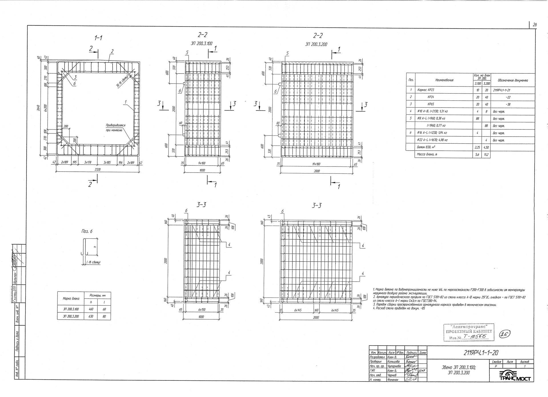 Железобетонные ЗП 200.3.100 для прямоугольных водопропускных труб армируются сетками и каркасами из стержней периодического профиля из углеродистой горячекатаной стали класса А-II. Монтажные петли конструкций изготавливаются из стержневой гладкой горячекатаной арматурной стали класса А-I или периодического профиля класса Ас-II.