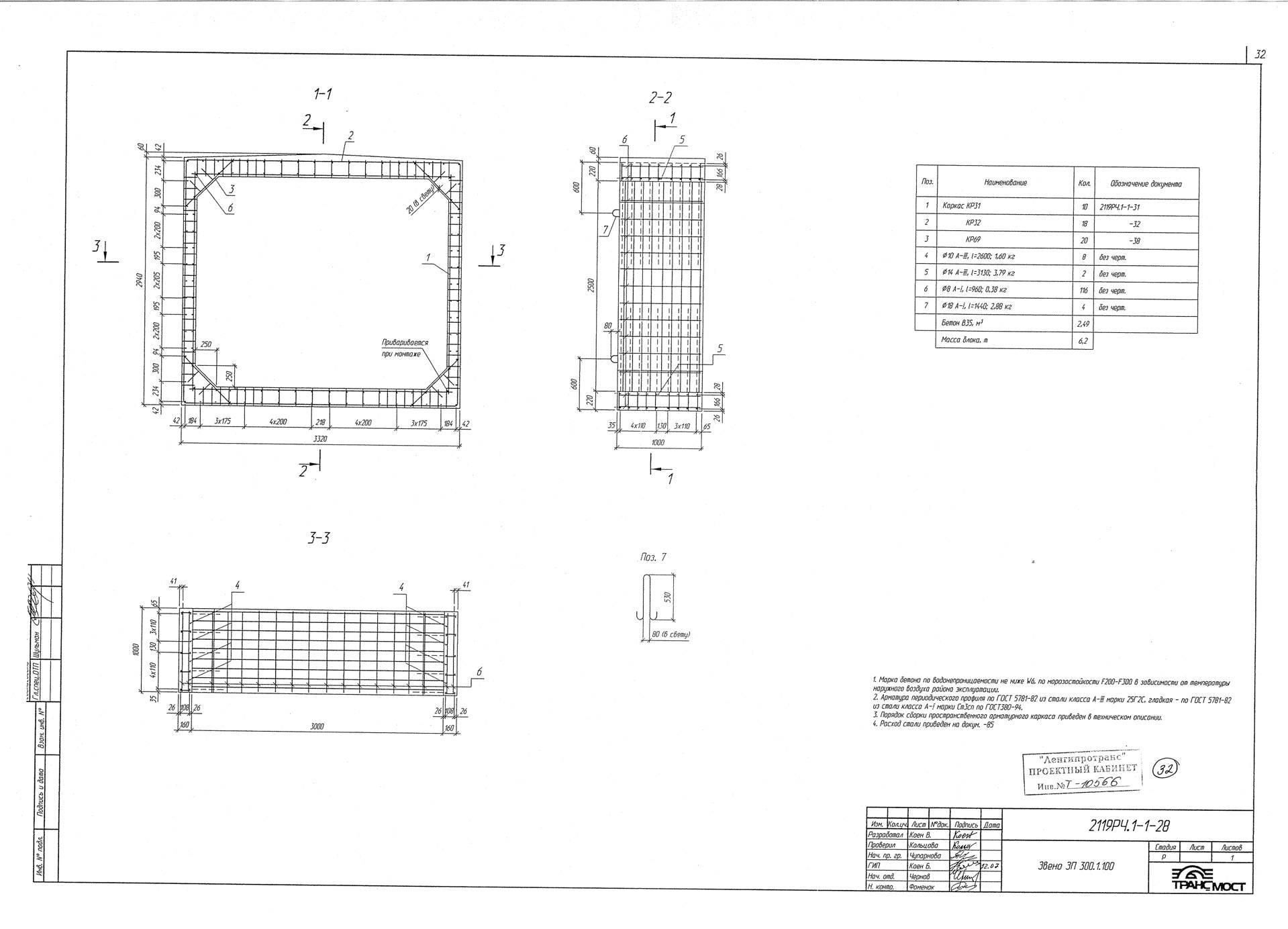 Трубы водопропускные и ЗП 300.1.100 для прямоугольных водопропускных труб изготавливаются в соответствии с ГОСТ 24547-81 «Звенья железобетонные водопропускных труб под насыпи автомобильных и железных дорог», ОСТ 35-27.0-85 «Звенья железобетонные круглых и прямоугольных водопропускных труб под железные и автомобильные дороги» из тяжелого конструкционного бетона. Класс бетона по прочности на сжатие принимается не ниже В15. Класс бетона по морозостойкости назначается в зависимости от климатического района строительства не ниже: F200 – при средней месячной температуре воздуха наиболее холодного месяца в районе строительства выше -15˚С; F300 – при средней месячной температуре воздуха наиболее холодного месяца в районе строительства ниже -15˚С. Класс бетона по водонепроницаемости принимается не менее W6. Дополнительно в бетонную смесь изделий вводятся вохдухововлекающие, газообразующие и пластифицирующие добавки для сопротивления воздействию агрессивных химических веществ, содержащихся в воде и грунте.