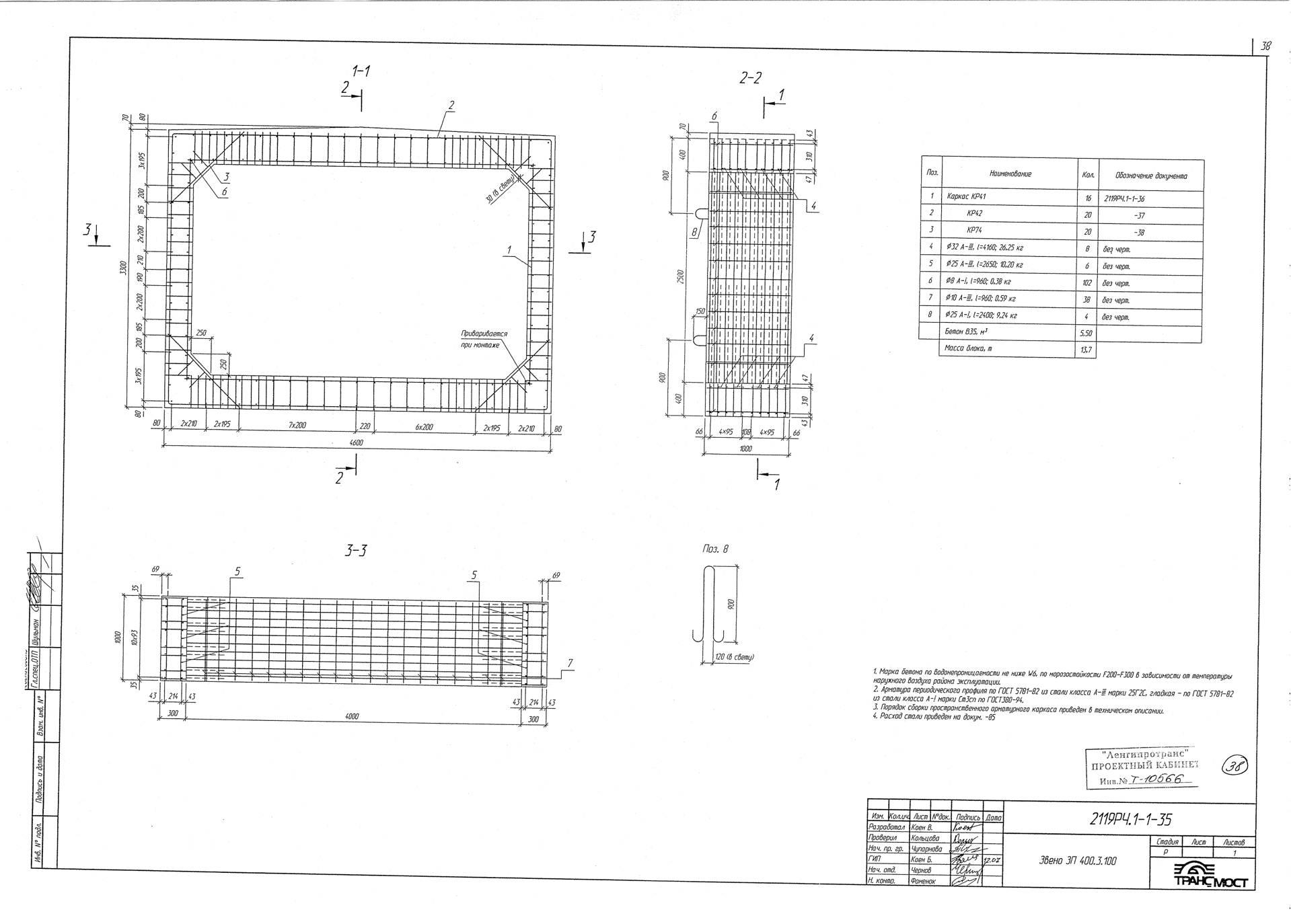 • Класс бетона: B35 (марка М450);