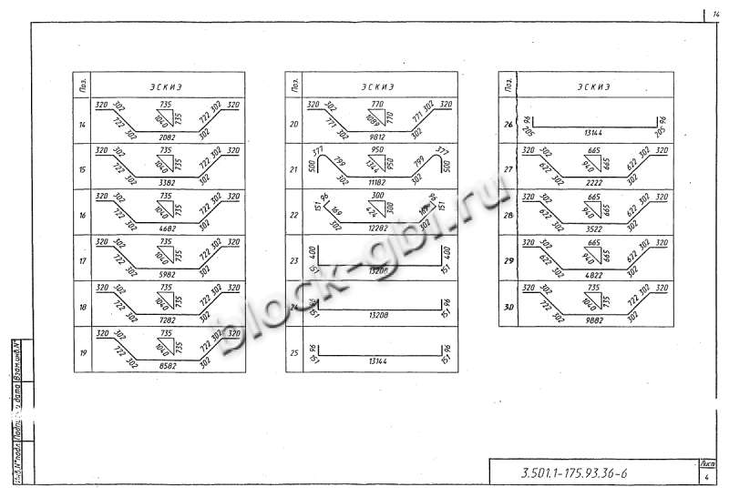 из ненапрягаемой или предварительно напряженной стали. Предварительно напрягаемая арматура изготавливается из высокопрочной холоднотянутой гладкой проволоки класса В и представляет собой пучок из 24х проволок. Пучки располагаются в нижнем уширении балки по горизонтали (в два ряда по высоте), и в стенках (в один ряд). Для балок длиной 23,6 м существует вариант армирования из 48 проволок. Ненапрягаемая арматура изготавливается из стали периодического профиля класса А-II или Ас-II и стали класса А-III. Рабочая арматура ненапрягаемых балок дополняется стержнями из гладкой стали класса А-I.