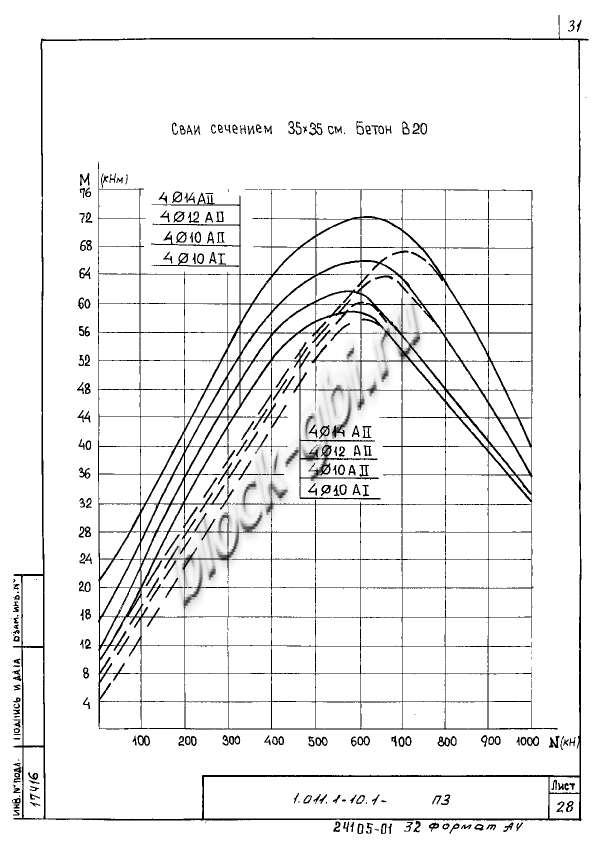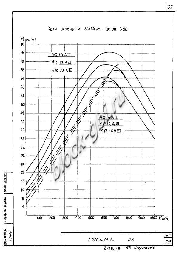 ЖБИ сваи С 90.35-6.1 общестроительные забивные с ненапрягаемой арматурой хранят в штабелях горизонтальными рядами с одинаковой ориентацией торцов свай. Между горизонтальными рядами свай при складировании и транспортировании должны быть уложены прокладки, расположенные рядом с подъемными петлями, или, в случае отсутствия петель – в местах, предусмотренных для захвата свай при их транспортировании. Высота штабеля свай не должна превышать ширину штабеля более чем в два раза.